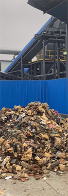 Inorganic components (such as bricks, stones, fine sand with particle size < 20 mm, etc.) are separated from the waste stream, while combustibles are shredded to a uniform particle size (≤ 100 mm) via two-stage shredding.